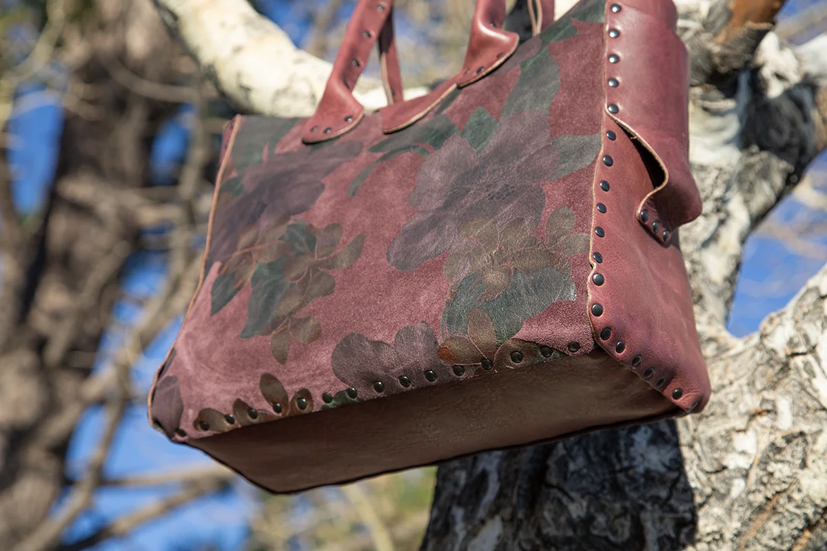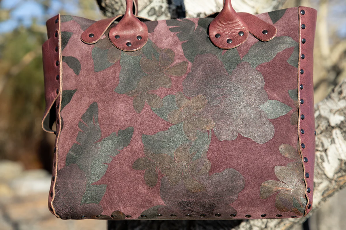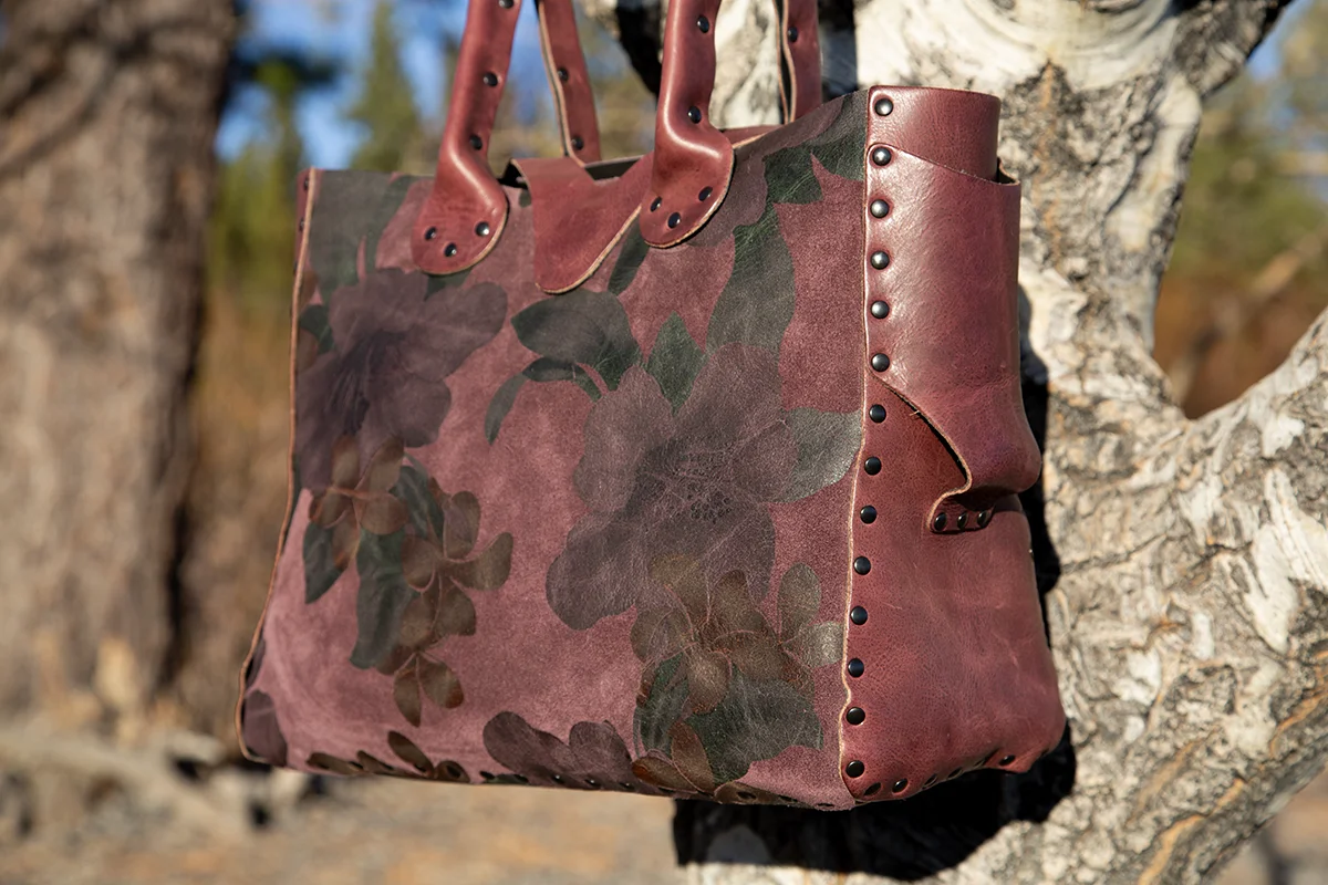 Handmade in California. A big-time favorite here at Ped, the Bright Bag is painstakingly constructed using only studs and not one stitch! Each bag is one of a kind and constructed of embossed gorgeous Italian leathers. I personally have the Bright bag and it's 15 years old! I still get a million compliments and constantly asked where I got my bag...of course, I say "Ped.com"! This ideal everyday tote easily fits all your necessities: wallet, cosmetics, binders, folders, small laptop, iPad or even groceries! Featuring a magnetic top closure and an outer cell-phone pocket, the Bright easily fits over your shoulder. Off you go with this unique, dynamite handmade bag! Dimensions are: H10.5" x L13" x W4.5". $524.00