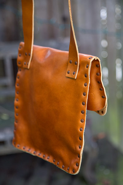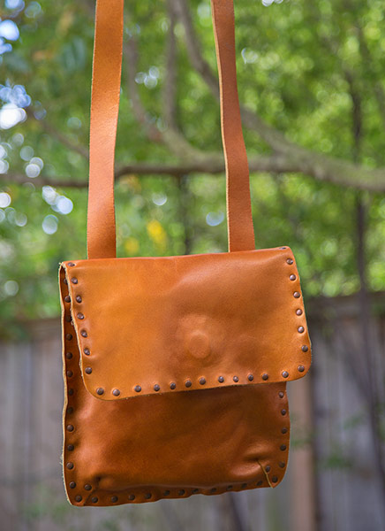 Handmade in California. The softest, lightest leather bag from Cydwoq, meet Ego. Constructed of delicious, Italian novelty leathers exclusively available at PED. This lightweight, easy leather 'envelope' bag is constructed with all studs and no stitching or glues. Unfold top and opens and closes easily with a magnetic closure. Ego is the perfect light bag when you want to be hands free but super chic with little effort! Dimensions: 11" H x 10" W with flap closed. Top flap is approximately 6" H. Shoulder drop is 22".