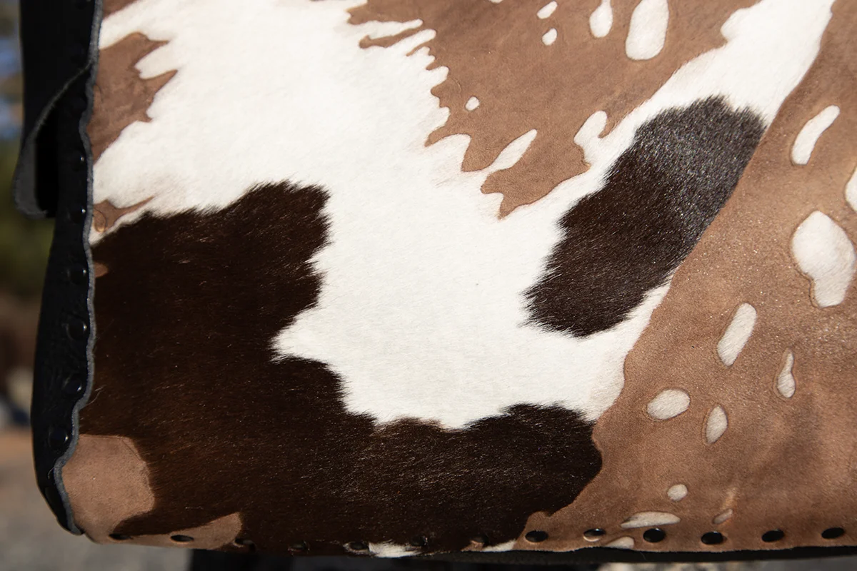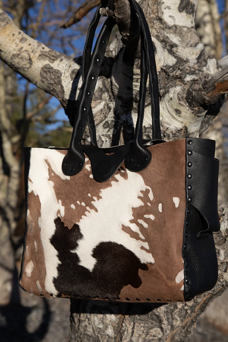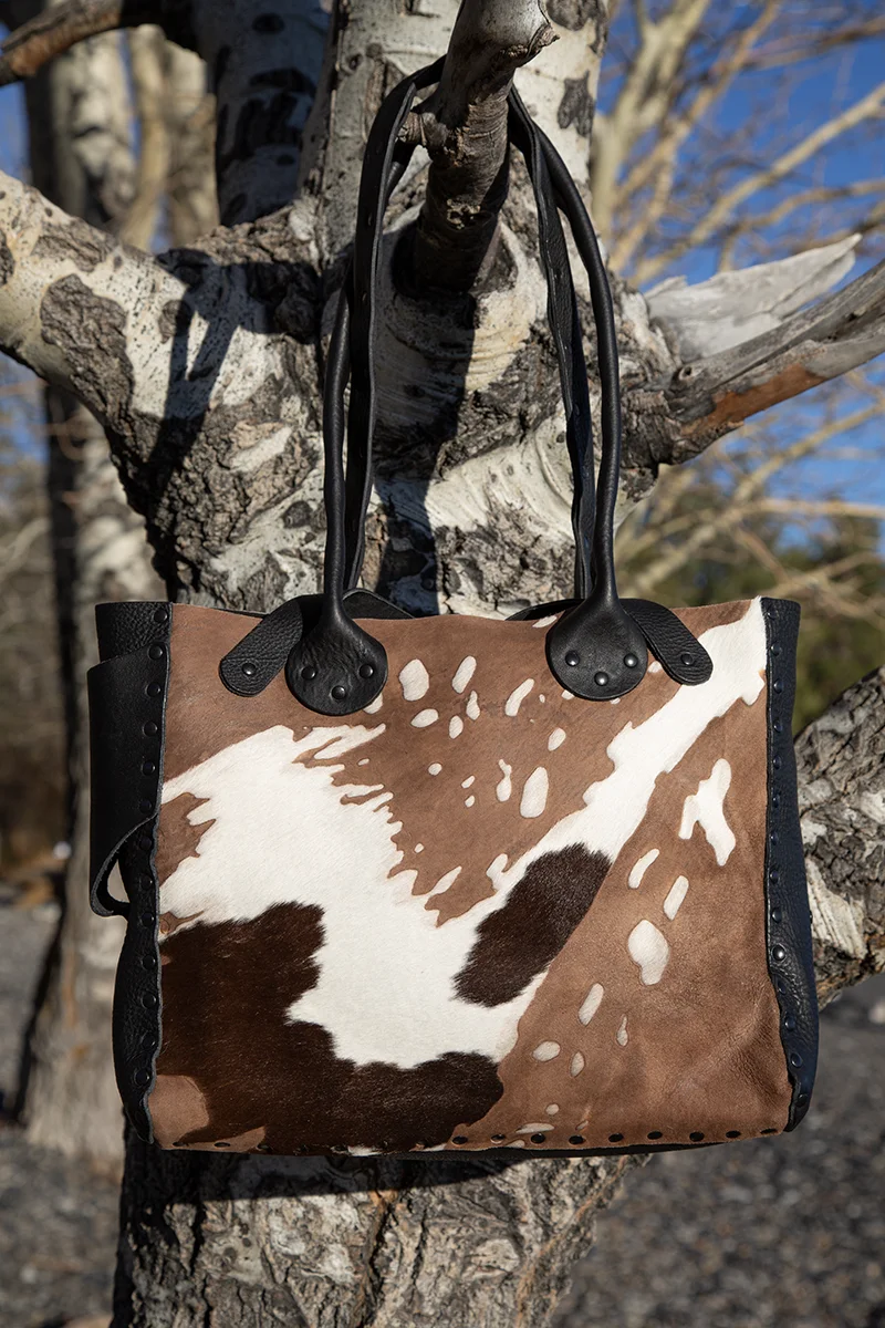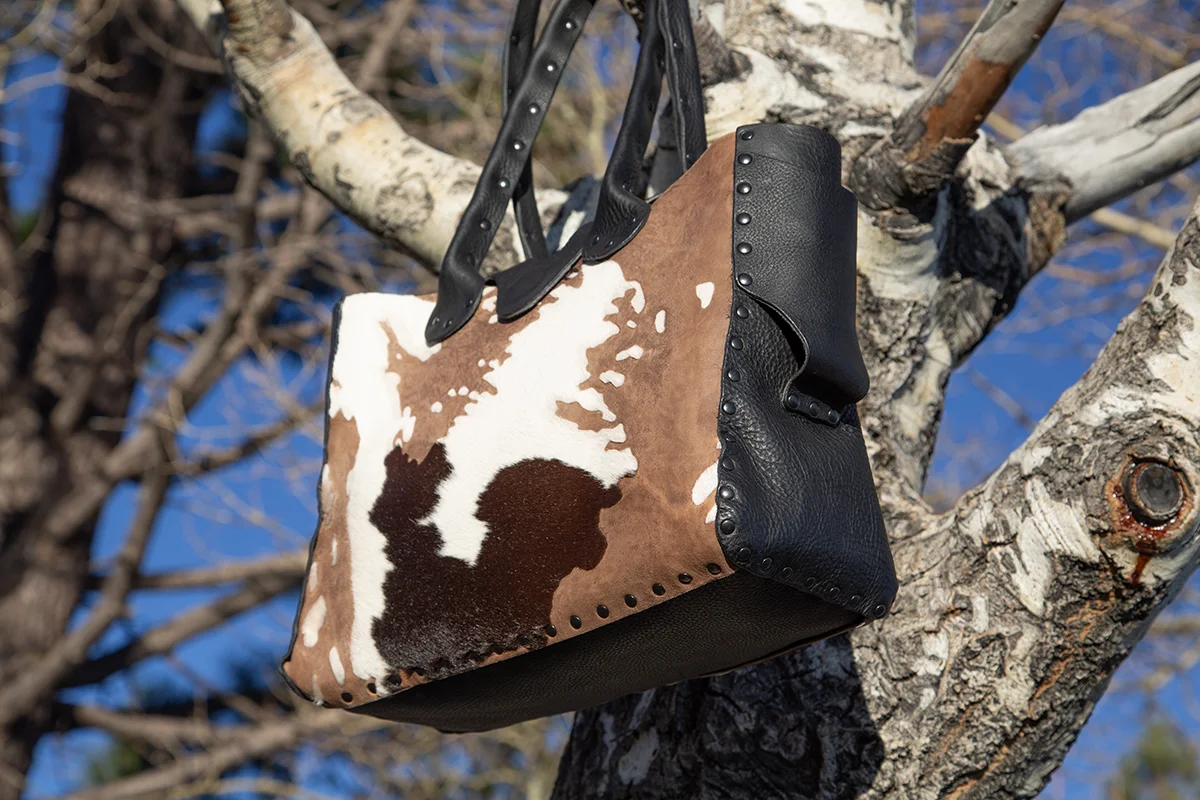 Handmade in California in leathers from Italy. Constructed with ALL studding and not one stitch, this drop-dead gorgeous bag is a labor-intensive design that works perfectly as an everyday tote. You can easily fit binders and folders in its roomy interior, which secures with a magnetic closure. Whether you wear the Pony Bright Bag over you shoulder or carry it as a handheld purse, you'll never lose your cell phone again, thanks to its handy outside phone pocket!! Definitely a PED FAVORITE! Dimensions are: H10.5" x L13" x W4.5". $524.00