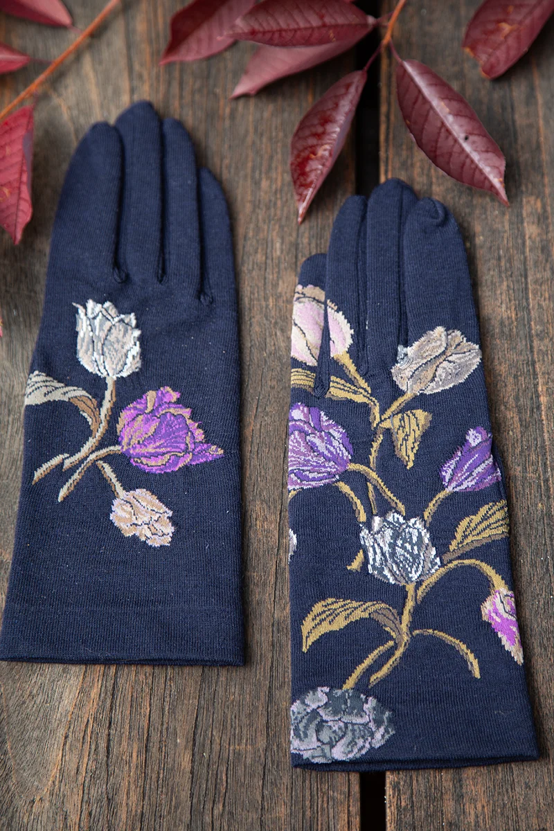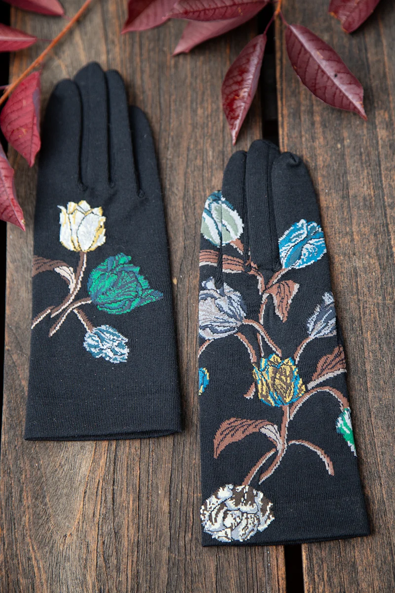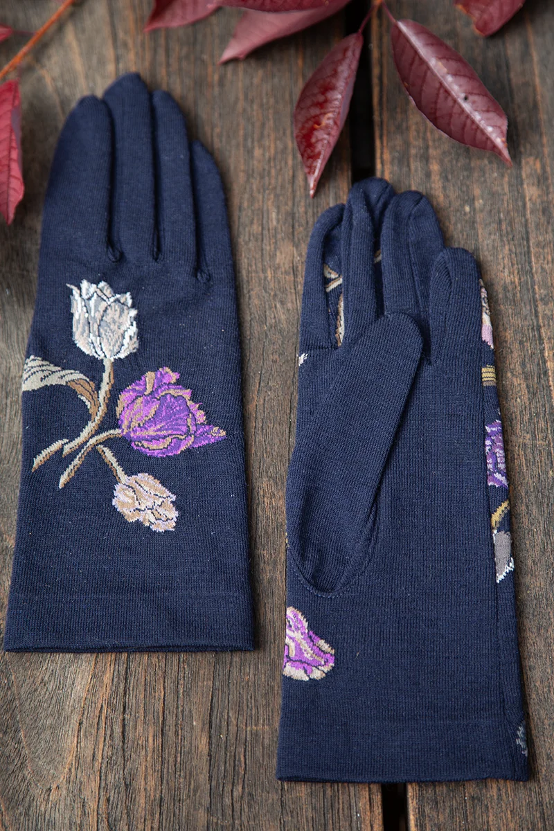 Made in Japan.. Tip toe through the tulips with these colorful Tulip gloves on! This beautiful, organic floral design will make you feel like stylish Jackie Onassis. The tulip textiles are bountiful on the top of the gloves and a bit on the back. Cozy, soft wool and the length is 9.5" long. 70% wool + 30% nylon. $148.00