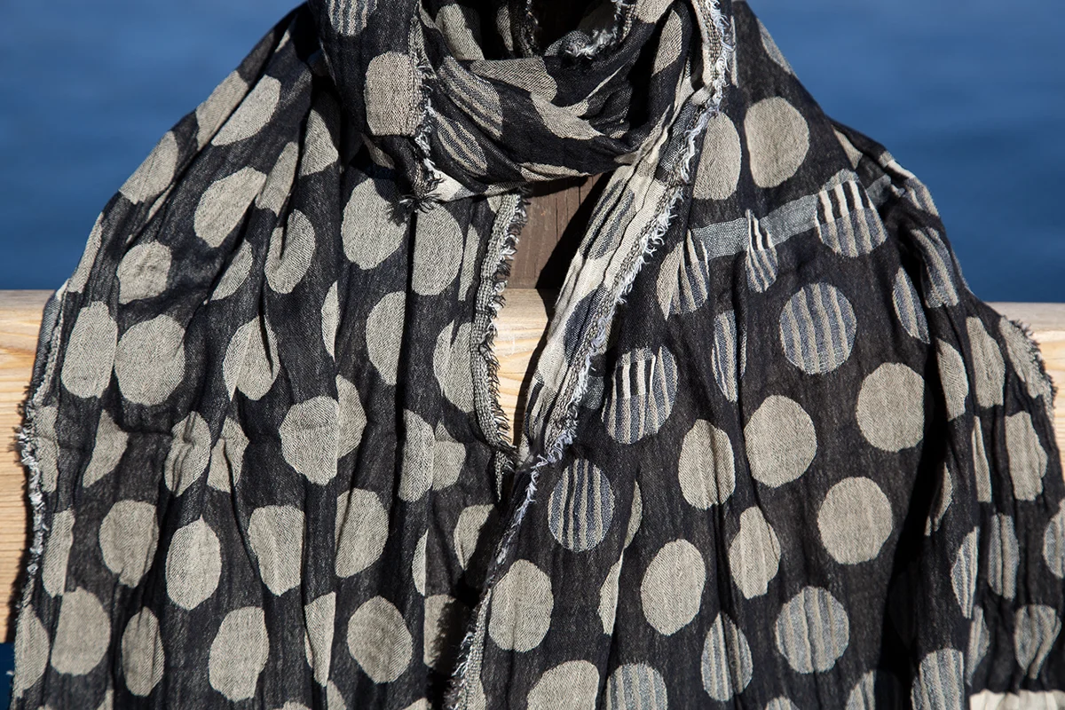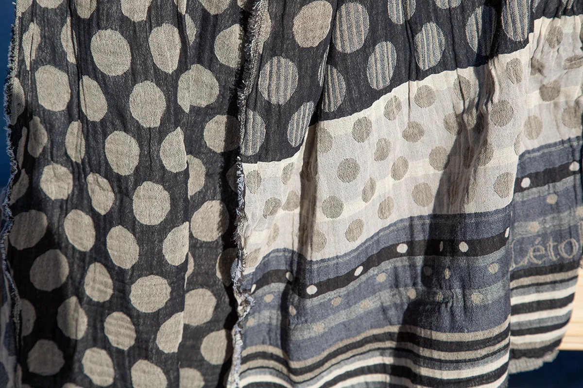 Organic Cotton & French Twist. Letol keeps alive a tradition with a collection of fine organic cotton scarves designed, dyed, woven and manufactured ethically in France. Each component is traceable through the entire production chain and we only use GOTS certified colors (nontoxic pigments) to dye our yarn. Letol's patterns, textures and color nuances come from 2200 cotton threads meticulously interlaced in each scarf. Designed by Sophie Badot, Letol collection is manufactured and hand finished in her own ateliers (Les Tissages de Charlieu), recreated during the 60's and nested in the heart of France.
