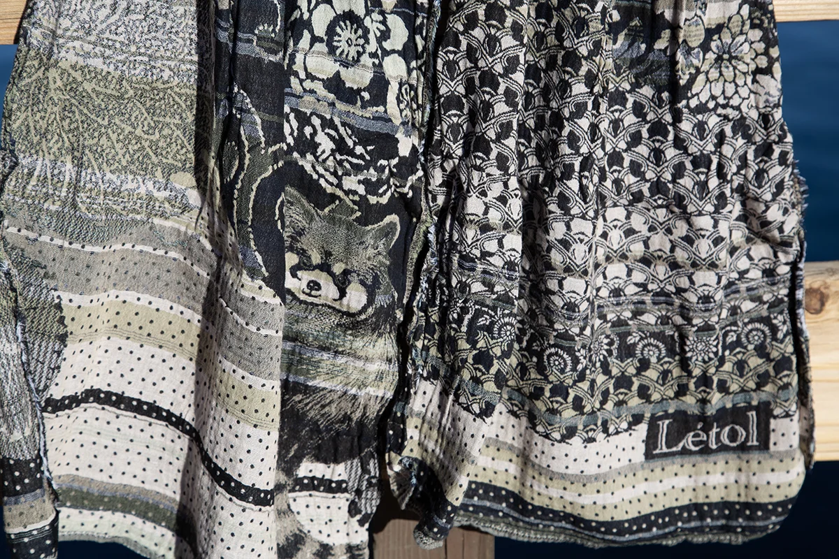 Organic Cotton & French Twist. Letol keeps alive a tradition with a collection of fine organic cotton scarves designed, dyed, woven and manufactured ethically in France. Each component is traceable through the entire production chain and we only use GOTS certified colors (nontoxic pigments) to dye our yarn. Letol's patterns, textures and color nuances come from 2200 cotton threads meticulously interlaced in each scarf. Designed by Sophie Badot, Letol collection is manufactured and hand finished in her own ateliers (Les Tissages de Charlieu), recreated during the 60's and nested in the heart of France.