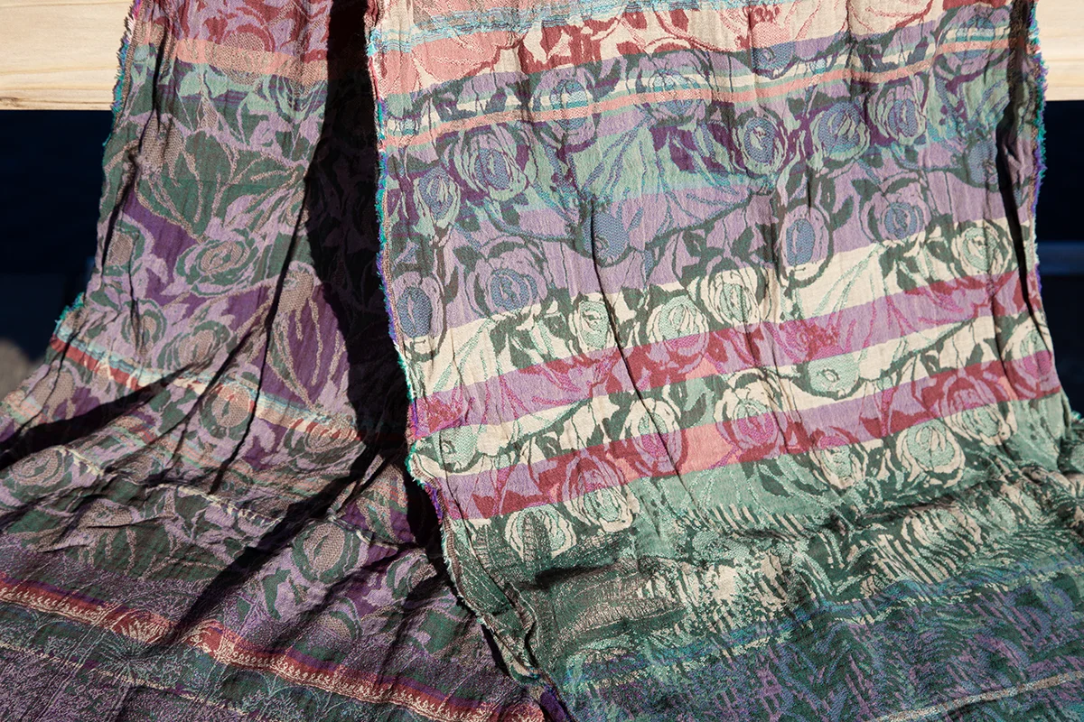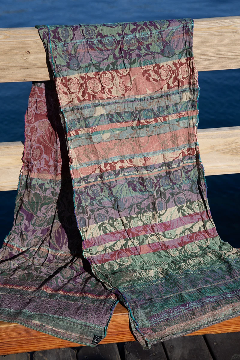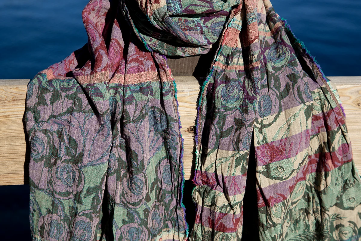 Made in France. Hand wash is best. 96% organic cotton + 4% recycled fibers. Dimensions: 78" x 18". $120.00