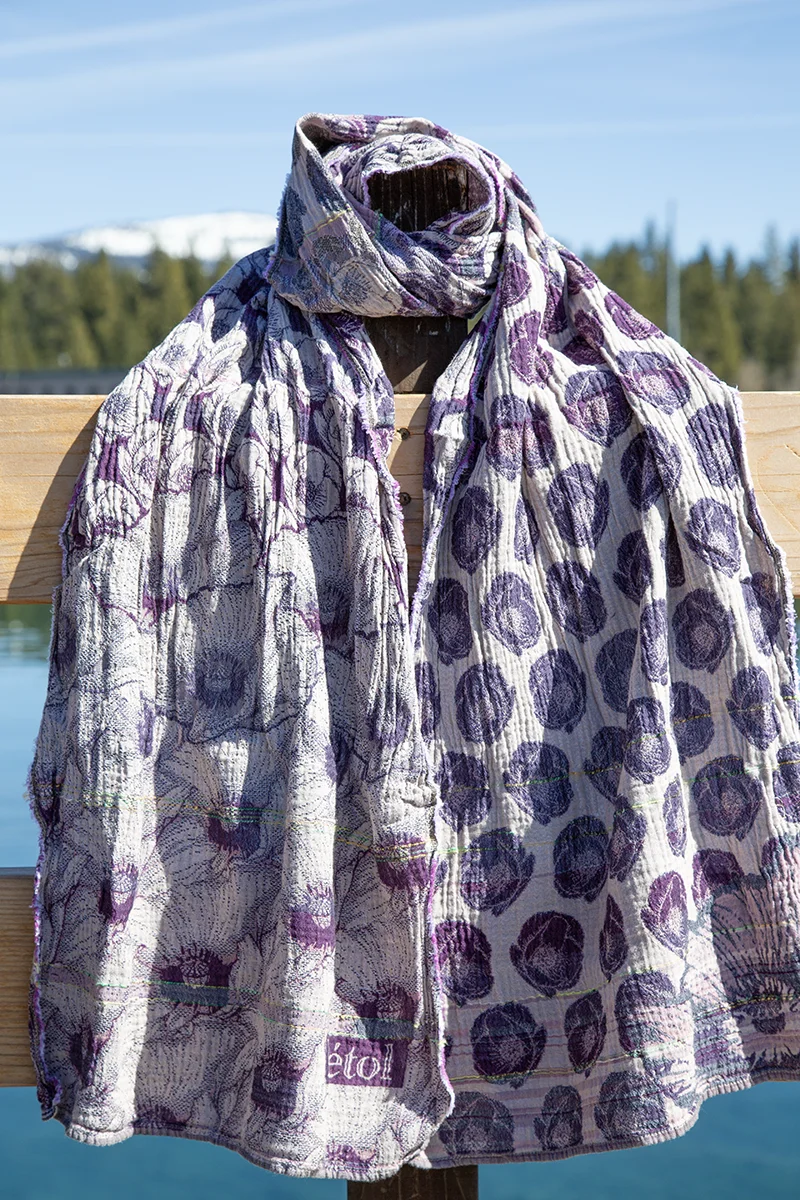 Made in France. Hand wash is best. 96% organic cotton + 4% recycled fibers. Dimensions: 78" x 18". $120.00