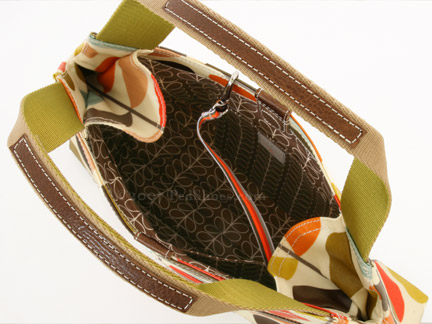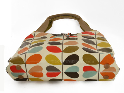 Ped loves Orla Kiely and this is the MUST HAVE bag for this spring!! An amazing textile designer from London, she makes the best bags around! She takes her very cool prints and translates them onto bags, wallets and luggage, which those in the know snap up as collectibles! This versatile Classic Shoulder Bag is made from Orla's signature shiny laminated canvas in a colorful print that practically sings! Lined in a sweet leaf-printed cotton, the interior features all the necessary compartments and a key fob to keep you organized, while, outside, rubber stoppers on the bottom protect the beauty of your bag. The woven nylon strap trimmed in leather fits easily over your shoulder, making this stunner ideal as an everyday tote or as a travel bag. (And there's a matching wallet available, too!) Dimensions: 18"L x 10"H x 4"D.