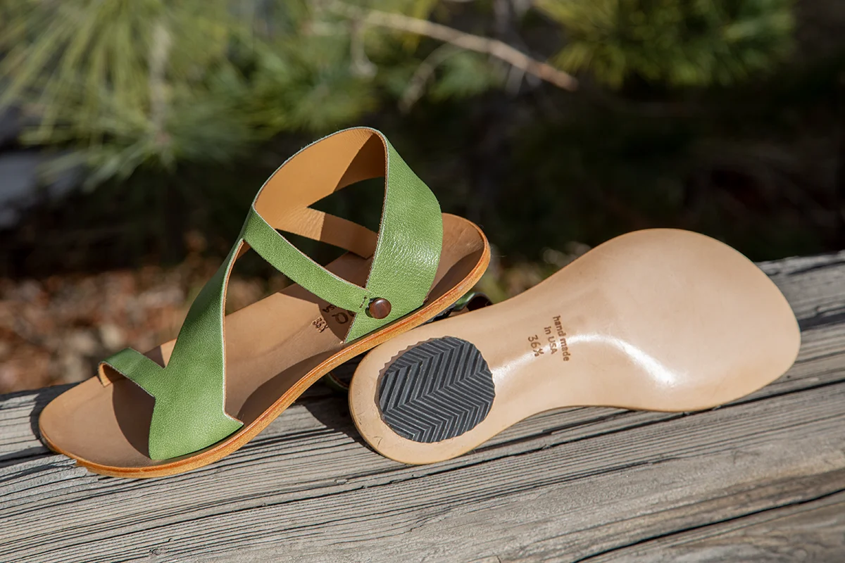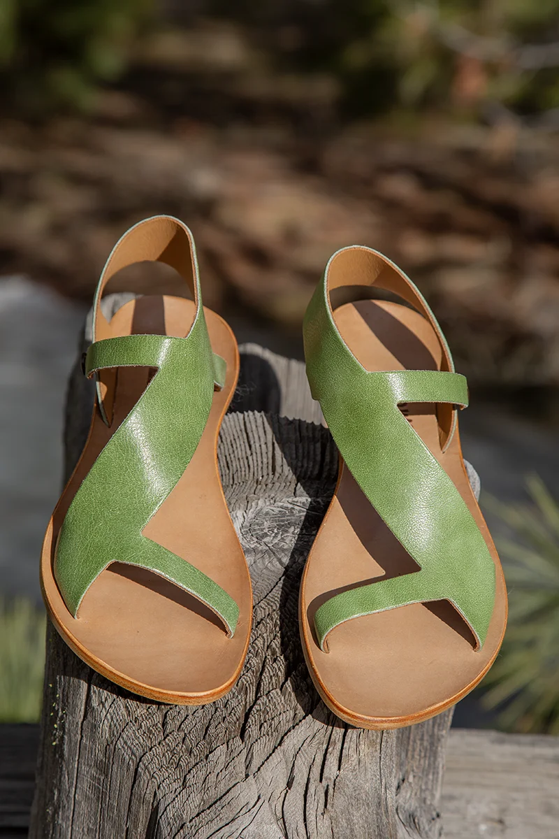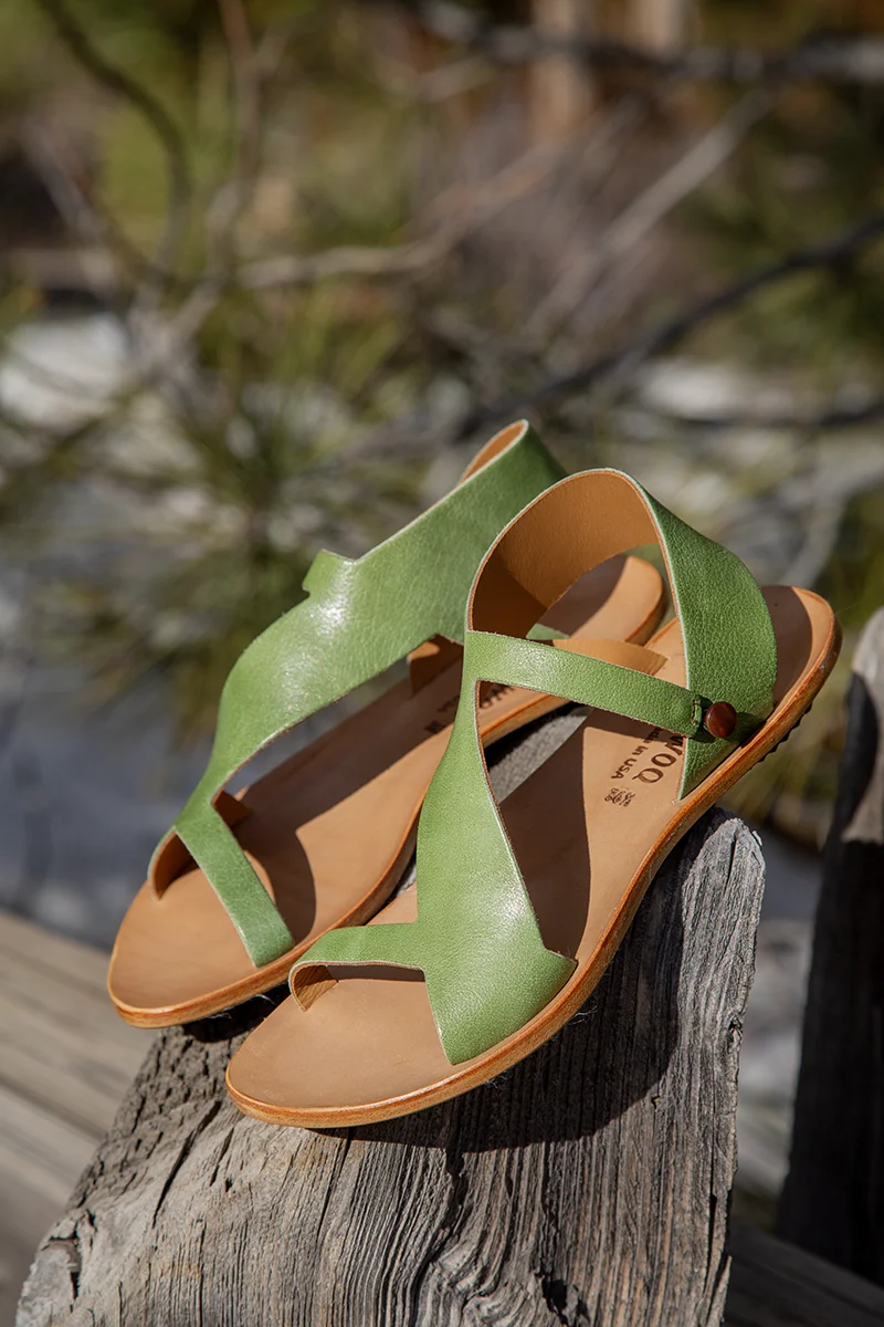 Handmade in California. My newest obsession are these Cydwoq Pampas sandals in rich leaf green leather from Italy. Lined in soft natural leather and on the signature, supportive arch support leather insole. Like all Cydwoqs, these lovely sandals will form to your feet with wear. We love how these Pampas sandals can be dressed up or down. Easily slip her on and attach the elastic loop and side button. Luxurious, easy to wear and easy on the eyes! Rubber on the heel outsole is great for sure footing and can easily replaced with wear. Pampas are made for walking so get out there, gal!    $304.00