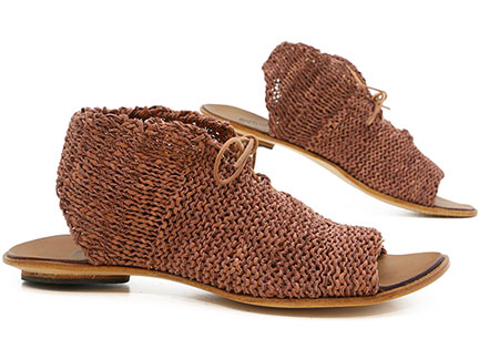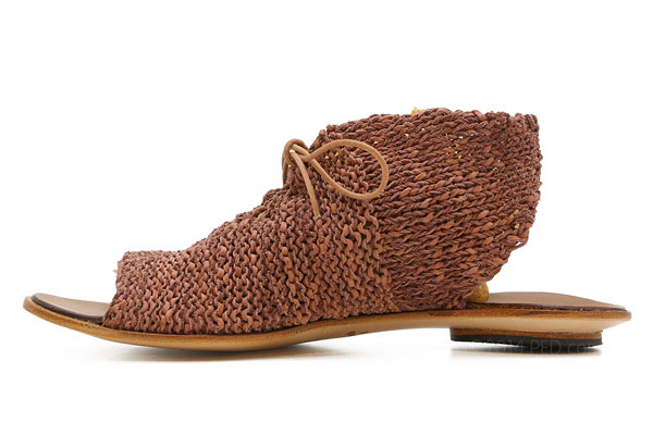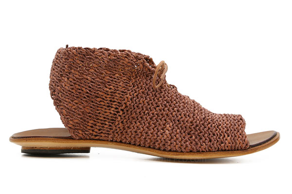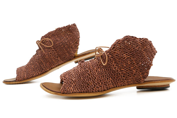 Handmade in California. Constructed with Italian knit leather, this new Prowler feels like a leather sock that is massaging your feet! Easy slip on with leather tie, Prowler is lightweight and fun for warmer days ahead. Delicious terracotta knit leather will form to your feet with wear (yum!) and go with anything! If she stretches out at all, just dip her in water and she will dry back to the original size. Brilliant!