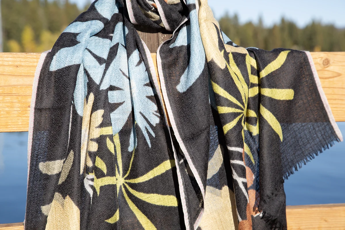 Designed in Denmark and made by textile wizards in India. Dimensions: 80 cm x 190 cm. 80% wool + 10% silk + 10% cashmere. $318.00