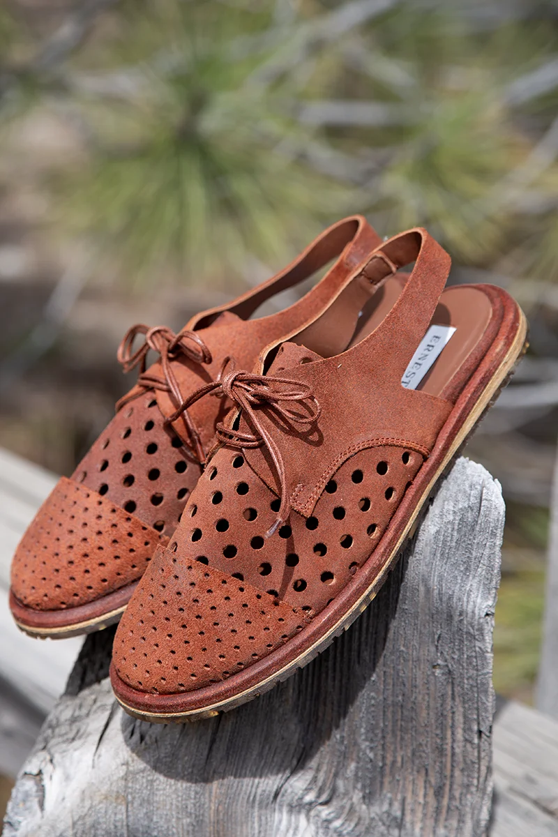We are excited to share a spectacular new style from our Italian partners. This "dotty delight" is the perfect choice for an airy and cool flat. Designed for both style and ease, it features a slingback for easy wear and an adjustable top tie for a custom fit. The rounded toe provides a roomy feel, while the fully padded leather insole and rubber outsole ensure all-day comfort. Bellisima! $328.00