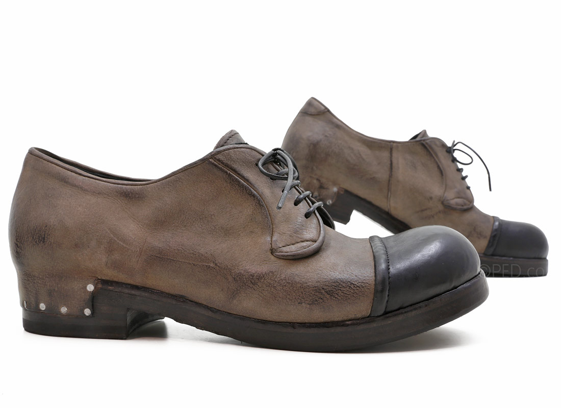 Handmade in Italy. Looking for that cool, comfortable oxford this Fall? Look no further as the design wizards at La Bottega Di Lisa created this beauty: The Positano Oxford. Constructed out of beautiful, hand dip dyed red Italian leather with contrasting mocha toe colors. Top leather extends into the heel and attaches with the exposed nail heads. I love this detailing! Comfortable rounded toe box, lace up, leather lined padded foot bed. Cosi bello!