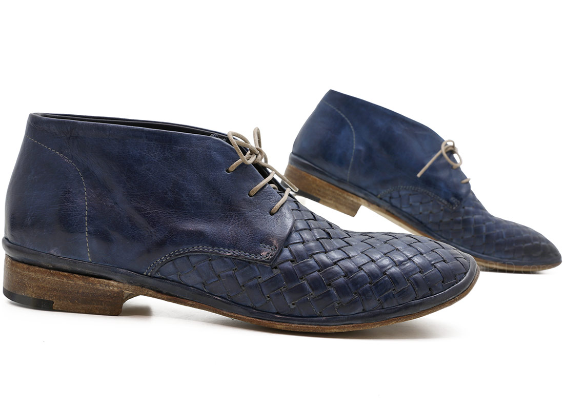 Handmade in Italy. This stunning oxford is constructed of dreamy blue leather and the braided toe leather is to die for! Soft toe box and lace up with solid blue heel and sides. I had to grab a pair of these for myself! Boot shaft rises to just shy of 3 inches in the back with a 1 inch stacked leather heel. Leather lined, rounded toe and oh, so, comfortable barefoot. These are dreamy to cruise around the City all day.