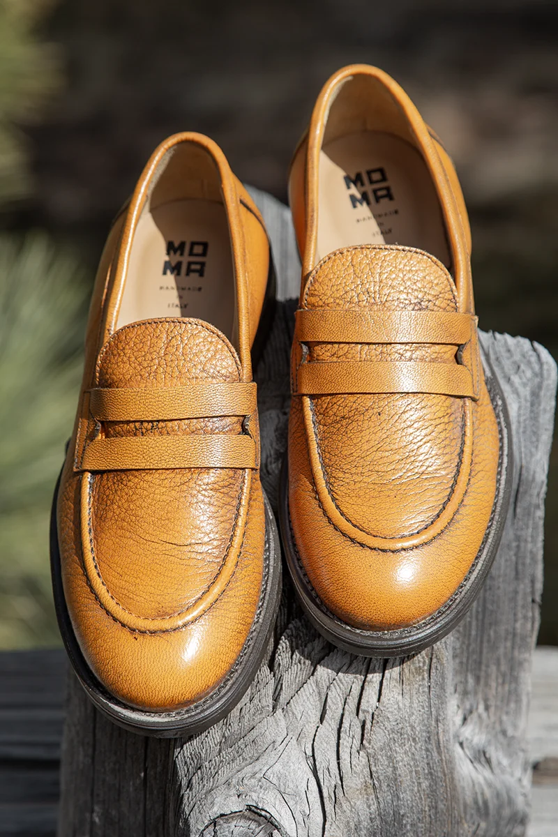 MOMA = Midnight Over My Action, is a collaboration of Gigio and Daniele Gironacci. These native Italians offer a winning creative collaboration of traditional Italian designs with unusual leathers and cool treatments. Based in the Marche hills of Italy, the styles are inspired by the vibrant nature of their environments. Combining old craftsmanship and new leather techniques, comfort reigns and MOMA styles are timeless. We are thrilled to add MOMA to our carefully curated Ped collections!