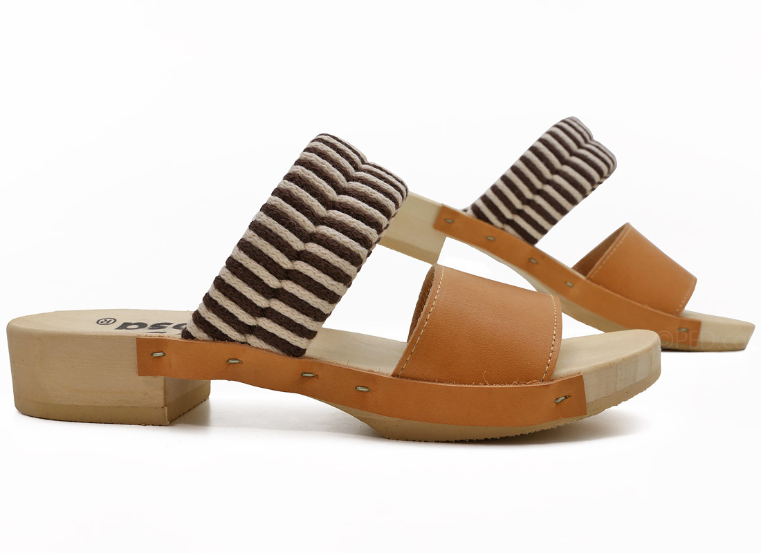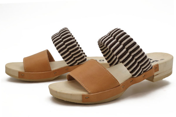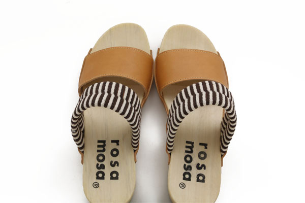 Handmade in Vienna, Austria. Rosa Mosa steals my heart with their creative use of materials and super comfortable constructions. This slip on clog, Bobo, is made of the flexy wood sole, front Italian leather band and soft woven cotton upper strap. The flex is embedded into the wood sole at the ball of your feet. Whether it's navy or coffee, Bobo will be a comfy ride on warm days. Full rubber crepe sole with 40% cotton and 60% leather upper.