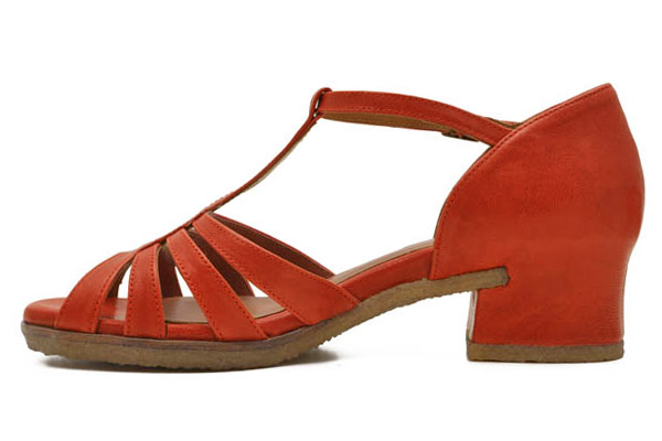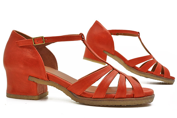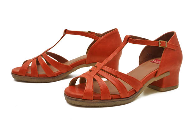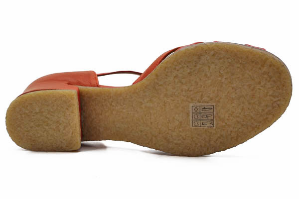 Made in Spain. Meet the Spanish princess of all, Luciana! Constructed out of the most beautiful blood orange leather, she is so comfortable and stylish! Sexy and strappy, this t-strap will take you miles. Leather lined, padded foot bed with full crepe rubber sole and an easy 1.5 inch leather wrapped heel. Wear her barefoot or with funky socks, either way she will be a trusted companion on sunny days!