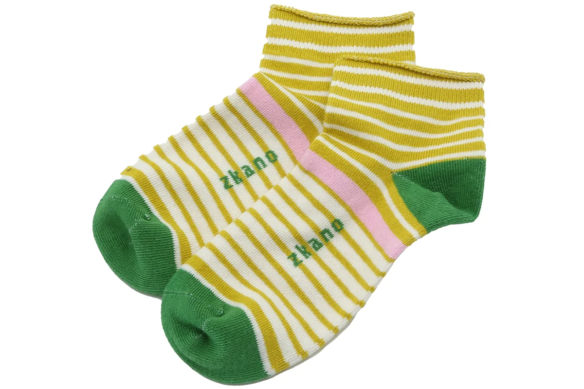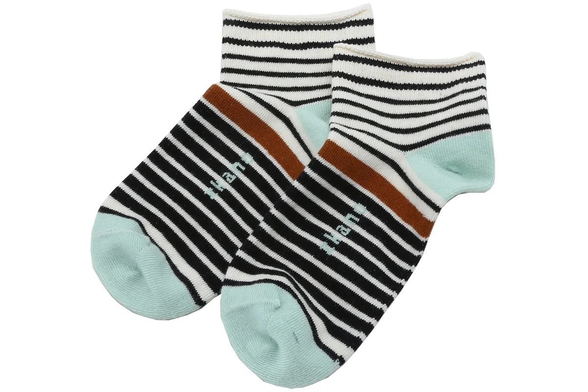 Made in Fort Payne, Alabama. Our favorite organic cotton striped ankle socks are finally back in stock! These socks are the perfect ankle height, incredibly soft, and add the perfect amount of pizzazz to any outfit. Now is the perfect time to stock up on these favorites. 63% certified organic combed cotton, 22% nylon and 15% elastic $20.00